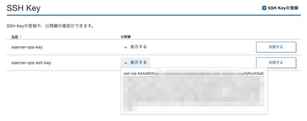公開鍵をエックスサーバーVPSに登録する