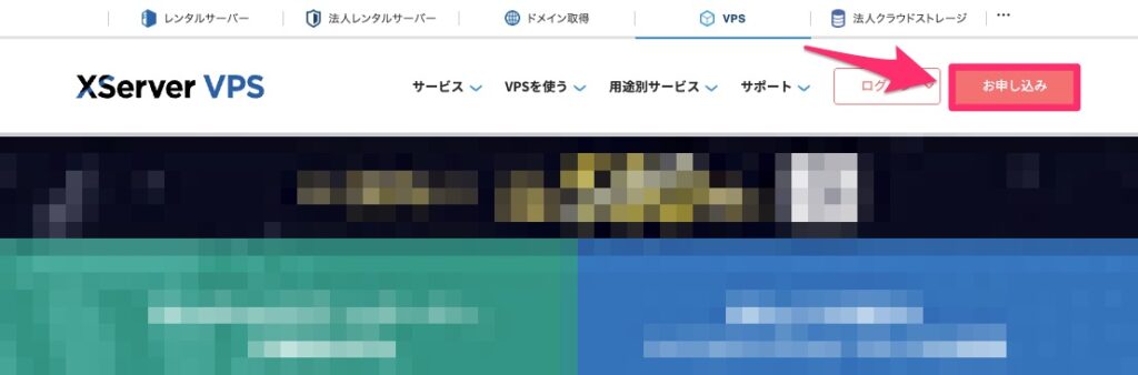 「エックスサーバーVPSのホームページ」にアクセスして、右上にある「お申し込み」ボタンをクリックしましょう。