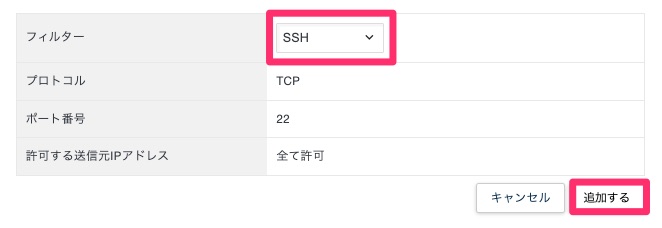 すると、以下のような画面が出てくるので、まずはSSH用のポートを解放。